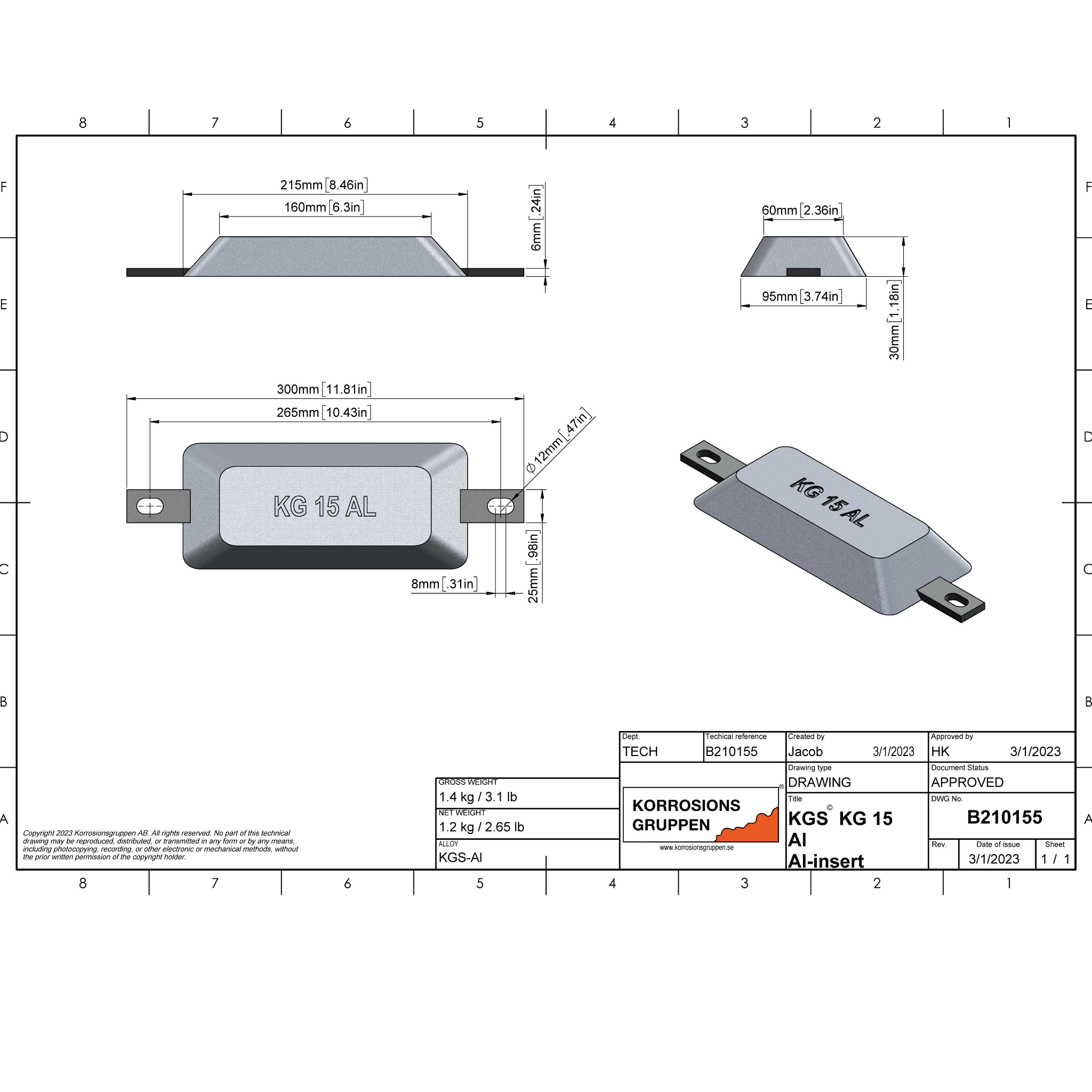 Aluminiumanod -KGs © 25 - 265*115*34 al -Unfucements
