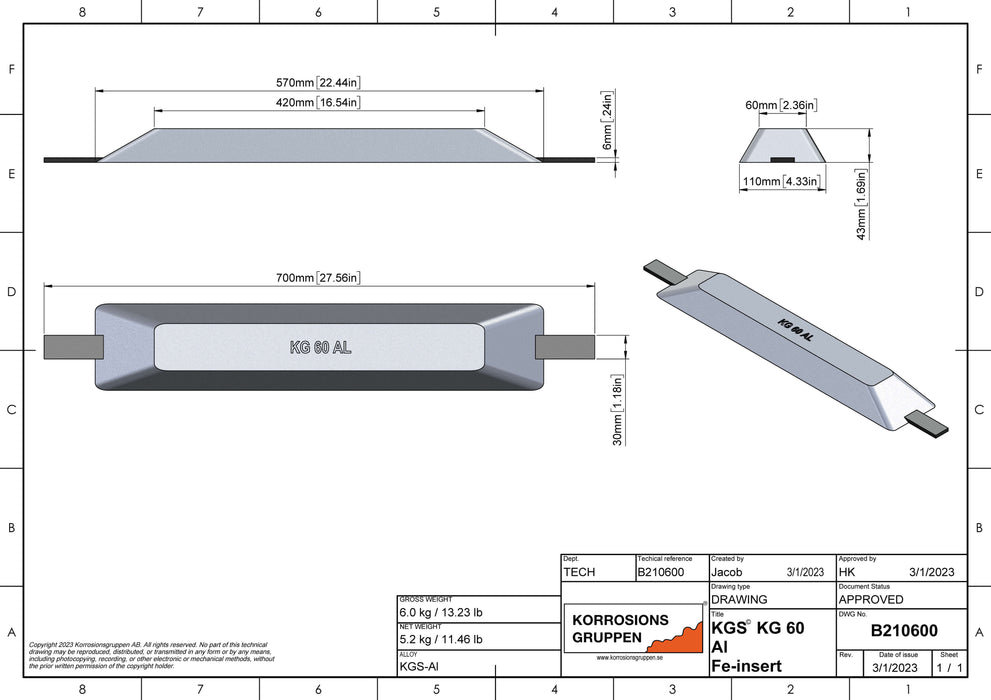 Aluminium-Anode TYP 60 - 570*110*43